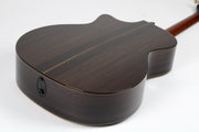 La 914ce est dotée d’un dos et d’éclisses en Indian Rosewood, associés à une table en Sitka Spruce massif, offrant une signature sonore pleine, expressive et riche, qu’il faut absolument entendre pour la croire. Le manche en Tropical Mahogany, combiné à une touche en West African Ebony, procure une sensation de jeu irréprochable et une réponse exceptionnelle, autant en flatpicking qu’en fingerpicking, ce qui en fait une guitare idéale pour une grande variété de styles.