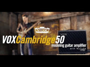 The VOX Cambridge50 is a modern modeling guitar amplifier powered by Nutube and Celestion, delivering powerful and responsive tones. The VOX Cambridge50 is an ambitious product that opens new possibilities in a modeling guitar amp. It features Nutube for authentic tube distortion and response, along with an open-back cabinet loaded with a 12-inch Celestion speaker for classic VOX tone. Its straightforward design allows you to easily dial in parameters from the front panel or store your favorite settings as presets. With 11 amp models, 8 built-in effects, and an onboard tuner, this amp is perfect for a wide range of applications and musical styles.